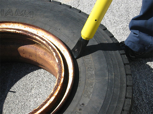 • The wedge foot is forced between the bead and rim flange, delivering blow directly to the tip