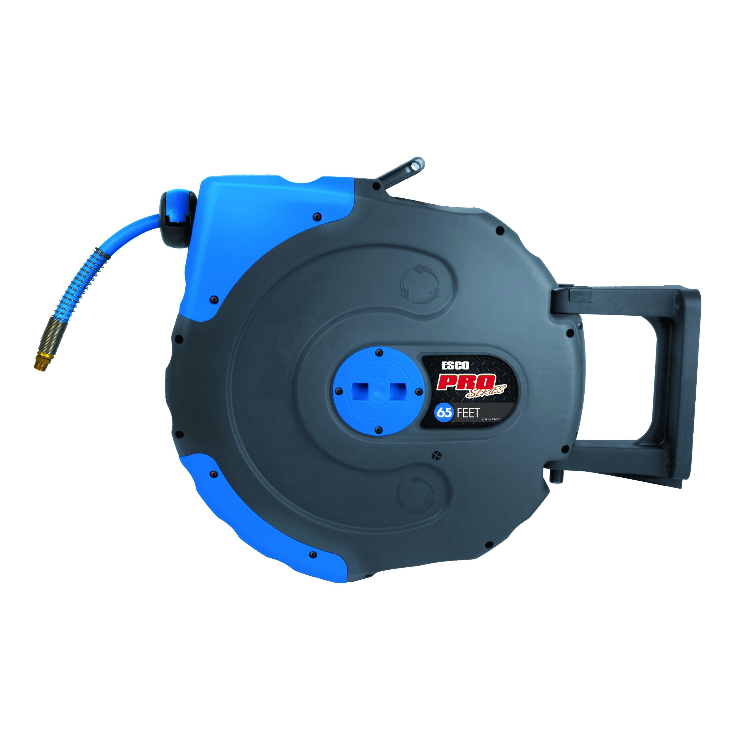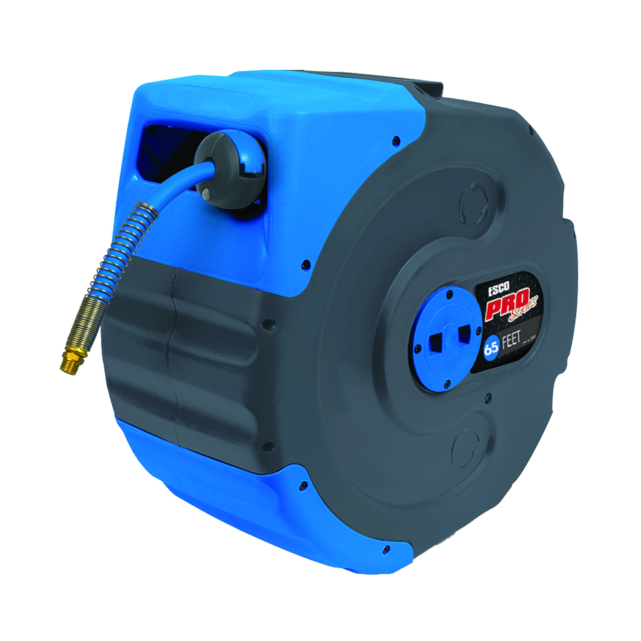 The ESCO Pro Series Air Hose Reels (Model #10970) are designed for professional and home working environments. Cased in a fully protective outer shell, these hose reels with withstand elements like dirt and other contaminants that can damage and alter the functionality of the hose reel and its components. Each unit comes equipped with a heavy-duty swivel mounting bracket that can be position to “swivel” or stay stationary as well as an easy to adjust hose stop.