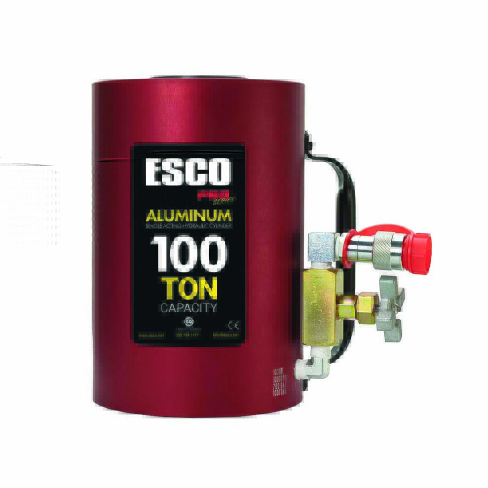 The ESCO Pro-Series line of Heavy Duty cylinders are single acting spring loaded hydraulic cylinders designed to be compact and lightweight for easy positioning with attached handle. Unit includes shut-off valve which allows the pump to be disconnected while the ram is extended.