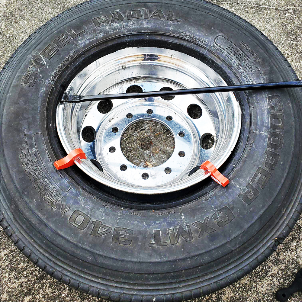 • Removes the need to “Walk” on the tire while mounting the tire back onto the rim