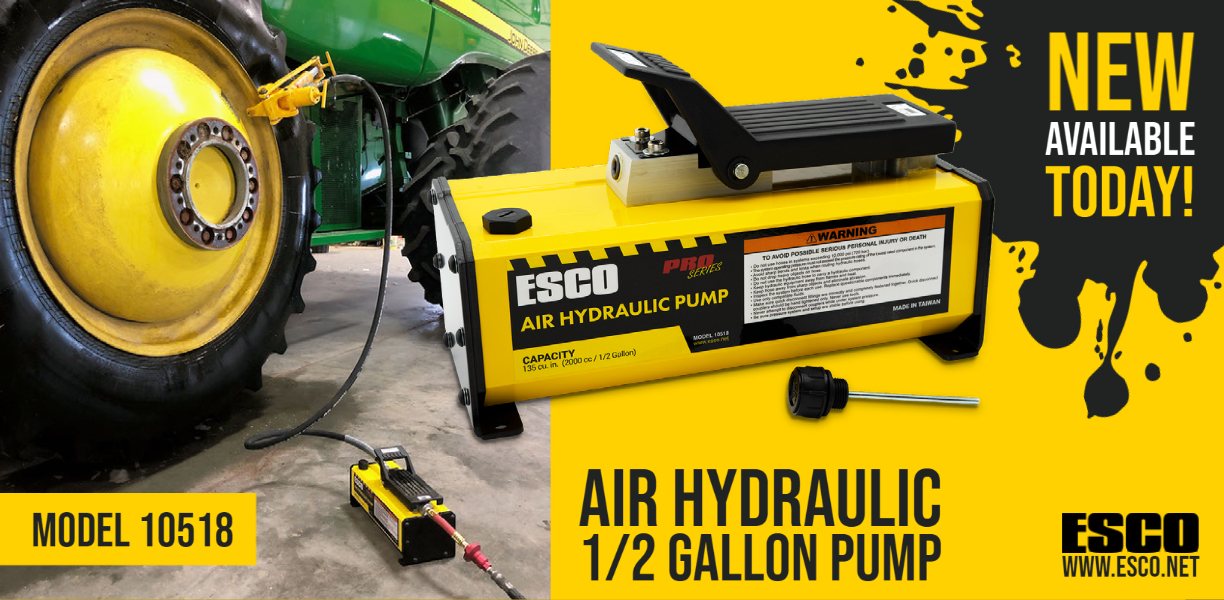 For over 37 years, ESCO has been a world leader in quality hydraulic tire changing tools and accessories for the Commercial Truck, OTR, Mining, Automotive, and Agricultural Market. ESCO produces tire service and handling products ranging from heavy-duty bead breakers; hydraulic rams; air hydraulic pumps; heavy-duty jacks and stands; tire demounting and mounting tools; tire-wheel dollies, torque wrenches, and many other quality tire service equipment to better aid in safely and efficiently servicing tire/wheels.