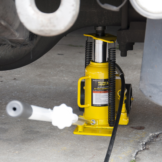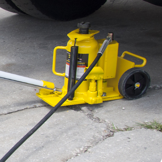 The Yellow Jackit Line of Air Hydraulic Lifting Equipment is designed with the heavy duty tire service market in mind. With lifting capacities from 20 Ton and up to 50 Tons, There is a Jack that will fit any service technician’s needs. Each jack designed uniquely for specific application including: Commercial truck, Bus, Tractor & Farm Equipment, and much more.