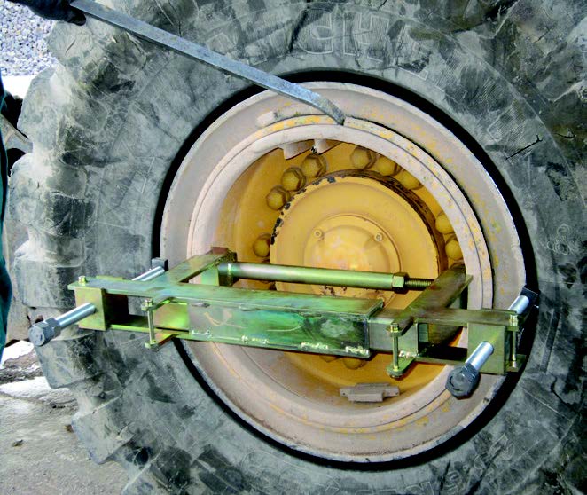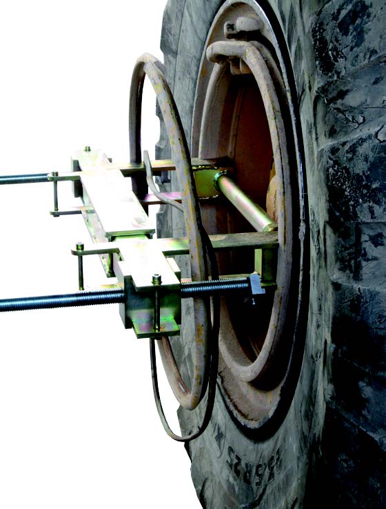 The OTR Large O-Ring Installer [Model #40807] is designed and built to manually install and remove O-Rings on OTR Tires 25”- 36”. The unit is also used to separate the inside and outside beads of OTR tires as well as assists in the removal and installation of the lock ring.