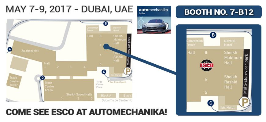 ESCO will be exhibiting at Automechanika Dubai from May 7th – 9th, Booth 7-B12. Come join us to see all of the new and exciting products available through ESCO today!