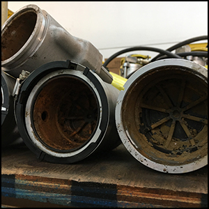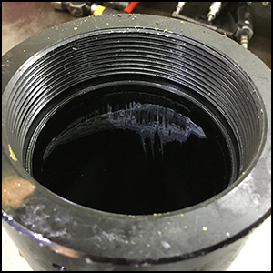 The issue I would like to bring to light is Point Loading. A point load happens when the load shifts from the center of the lifting pad to an outer edge. This will cause damage to the lifting pad (See Example) and also cause internal damage to the hydraulic cylinder walls and piston rod base (See figures 4 and 5). If you have had a jack piston rod that won’t retract you are more than likely experiencing a point load problem. Damage occurs mostly when the jacks are used to support the load throughout the job.