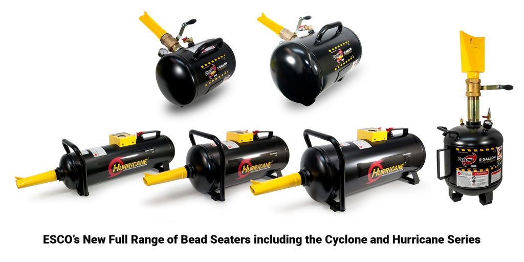 Brooksville, FL, September 28, 2020 – ESCO, a leading worldwide manufacturer and supplier of tire changing tools and accessories is pleased to introduce a full line of redesigned tire bead seaters, the Hurricane and Cyclone series. Used to seat the tire bead on all size tires, ESCO now offers a full range of bead seaters available in a variety of tank capacities and discharge valves.